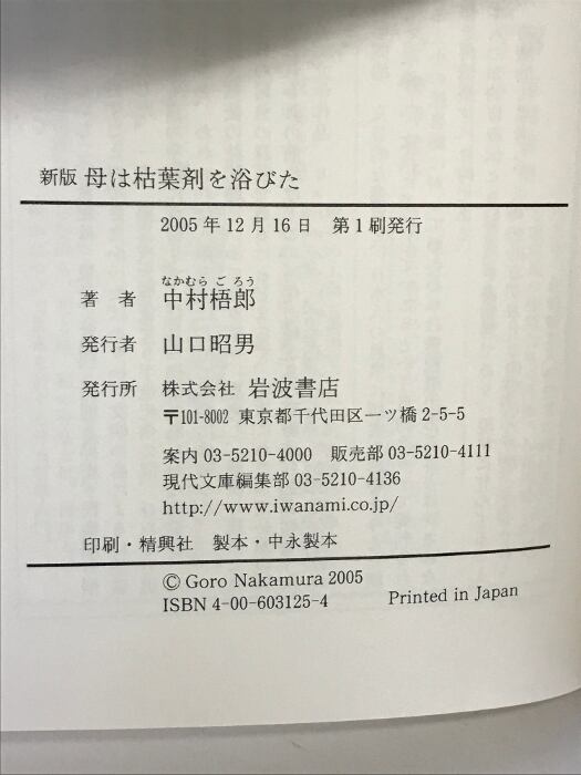 母は枯葉剤を浴びた 新版: ダイオキシンの傷あと (岩波現代文庫 社会 125) 岩波書店 中村 梧郎