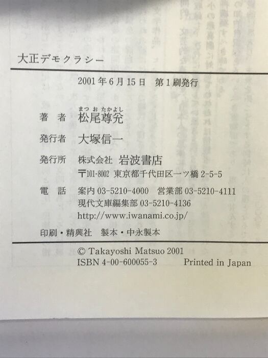 タイトル:大正デモクラシー (岩波現代文庫 学術 55) 岩波書店 松尾 尊兊