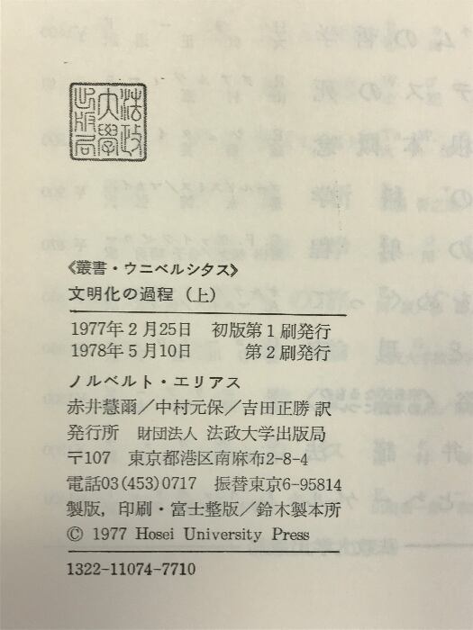 タイトル:文明化の過程 上 (叢書・ウニベルシタス) 法政大学出版局 ノルベルト エリアス