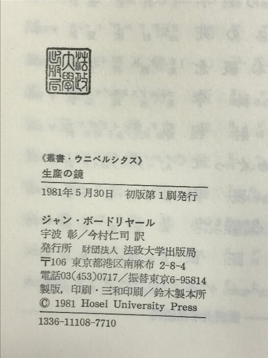 タイトル:生産の鏡 (叢書・ウニベルシタス) 法政大学出版局 ジャン ボードリヤール