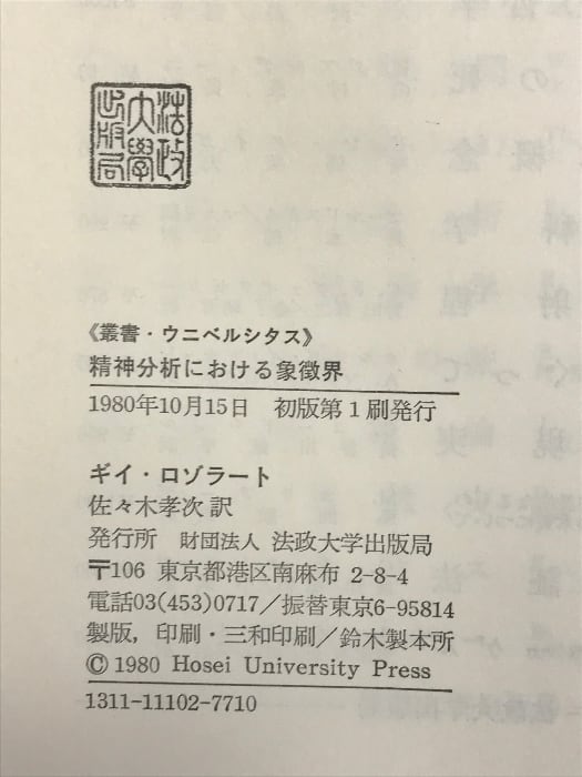 精神分析における象徴界 (叢書・ウニベルシタス) 法政大学出版局 ギイ ロゾラート