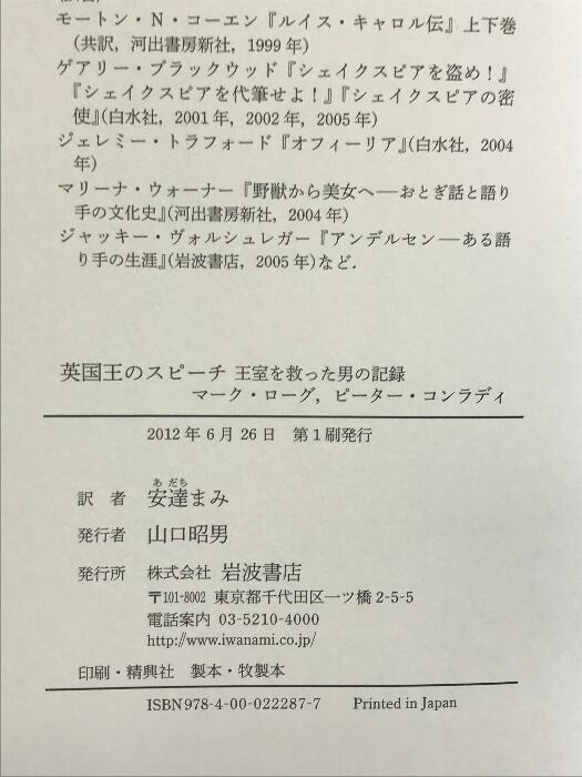 タイトル:英国王のスピーチ――王室を救った男の記録 岩波書店 マーク・ローグ
