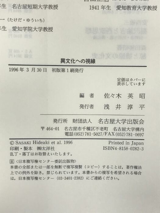 タイトル:異文化への視線―新しい比較文学のために― 名古屋大学出版会 佐々木 英昭