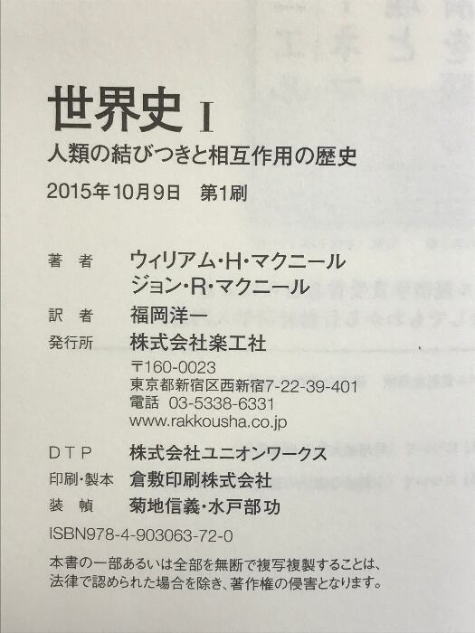タイトル:世界史 I ── 人類の結びつきと相互作用の歴史 楽工社 ウィリアム・H.マクニール