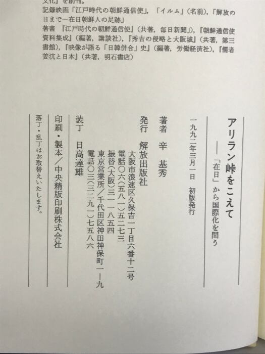 タイトル:アリラン峠をこえて: 「在日」から国際化を問う 解放出版社 辛 基秀