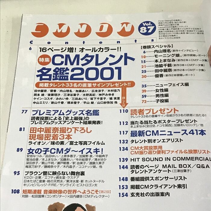 【15】 雑誌 CM NOW シーエムナウ VOL.87 特集 CMタレント名鑑2001 2000年11-12月号 玄光社 ポスター・ポストカード付き 内山理名 田中麗奈 池脇千鶴 本上まなみ 他