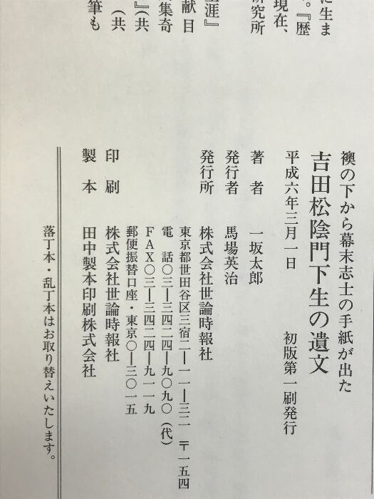 タイトル:吉田松陰門下生の遺文: 襖の下から幕末志士の手紙が出た 世論時報社 一坂太郎