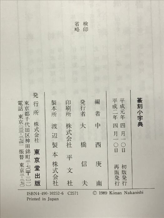 タイトル:篆刻小字典 東京堂出版 中西 庚南