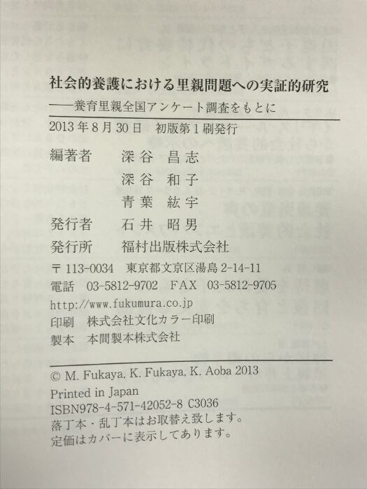タイトル:社会的養護における里親問題への実証的研究: 養育里親全国アンケ-ト調査をもとに 福村出版 深谷 昌志