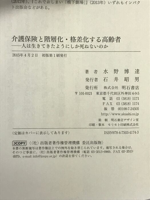 タイトル:介護保険と階層化・格差化する高齢者――人は生きてきたようにしか死ねないのか 明石書店 水野博達