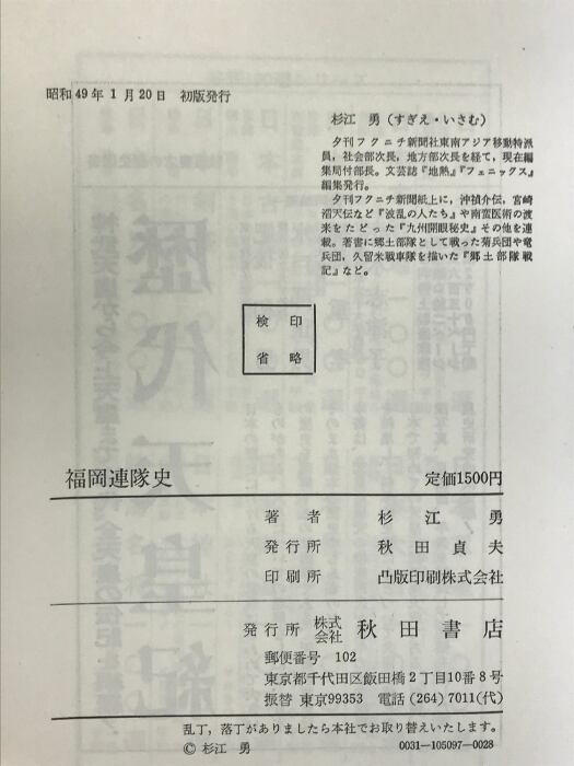 タイトル:福岡連隊史 秋田書店 杉江勇