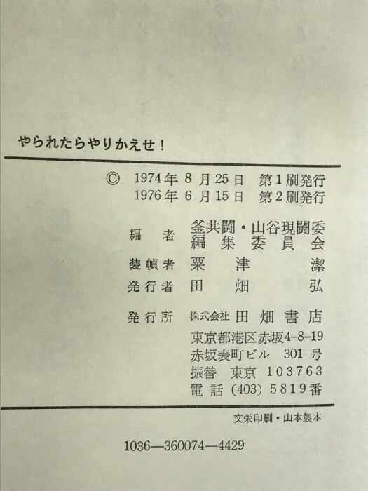 タイトル:やられたらやりかえせ!―実録釜ケ崎・山谷解放闘争 田畑書店