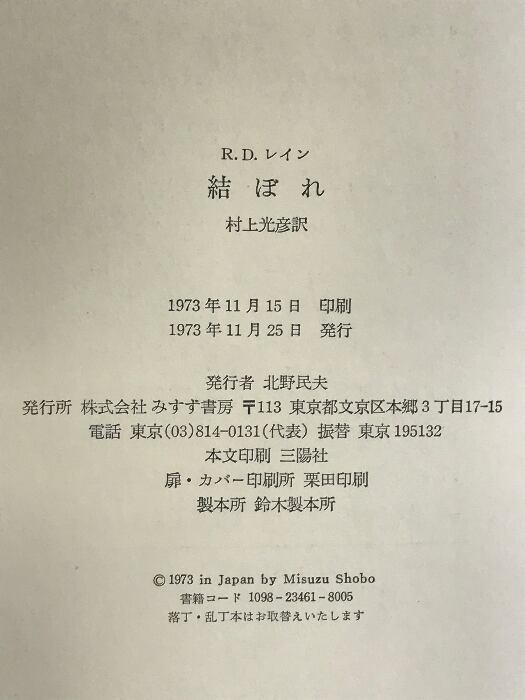 タイトル:結ぼれ みすず書房 R.D.レイン