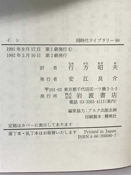 イシ: 北米最後の野生インディアン (同時代ライブラリー 80) 岩波書店 シオドーラ クローバー