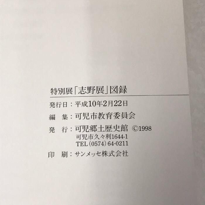 タイトル:図録 特別展 志野展 可児市制15周年記念 可児郷土歴史館 1998