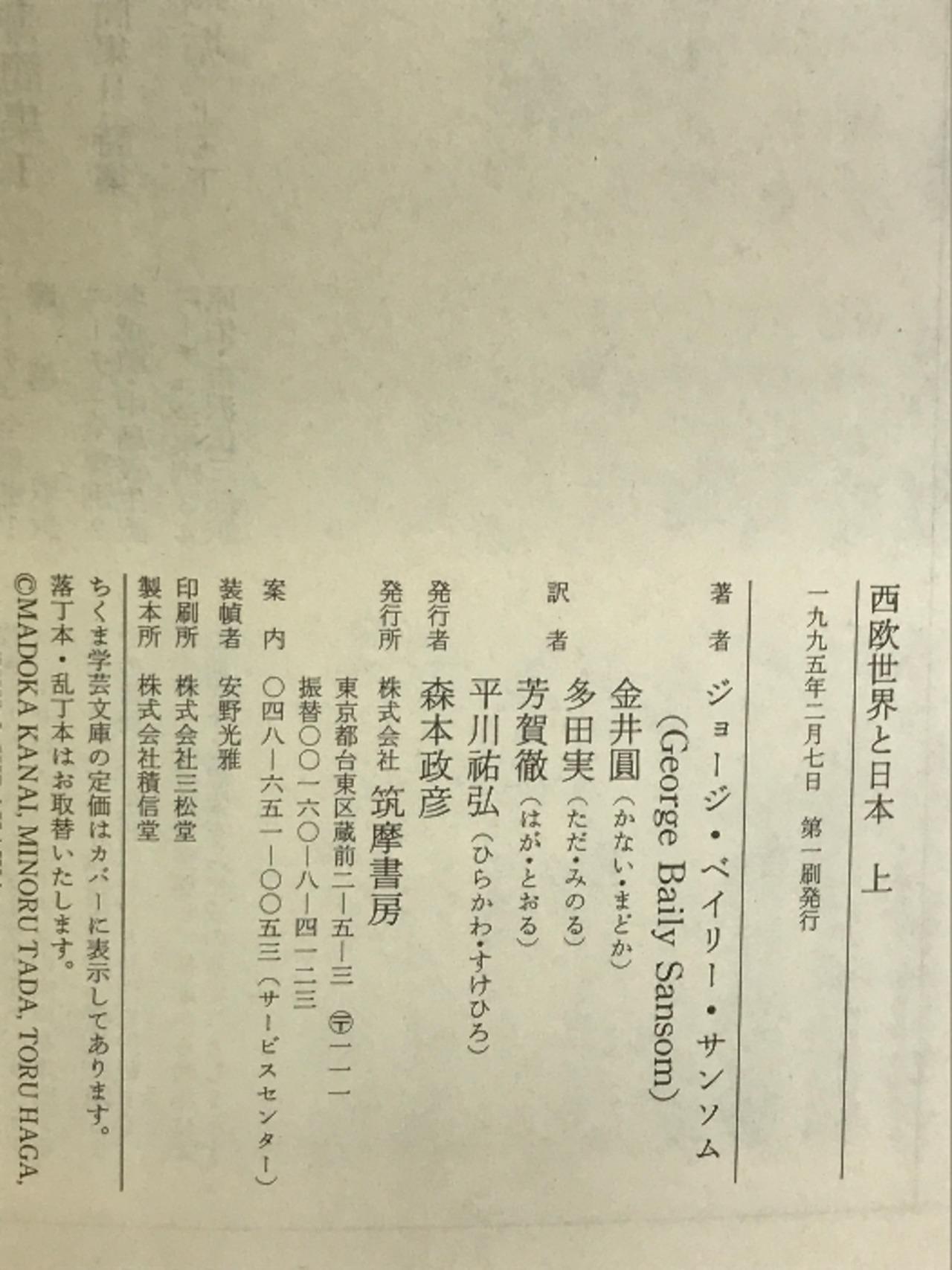 西欧世界と日本 上 (ちくま学芸文庫 サ 7-1) 筑摩書房 G.B. サンソム