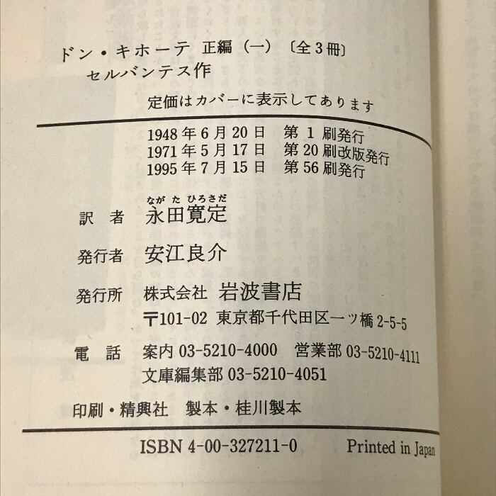 ドン・キホーテ 前篇1 (岩波文庫 赤 721-1) 岩波書店 セルバンテス