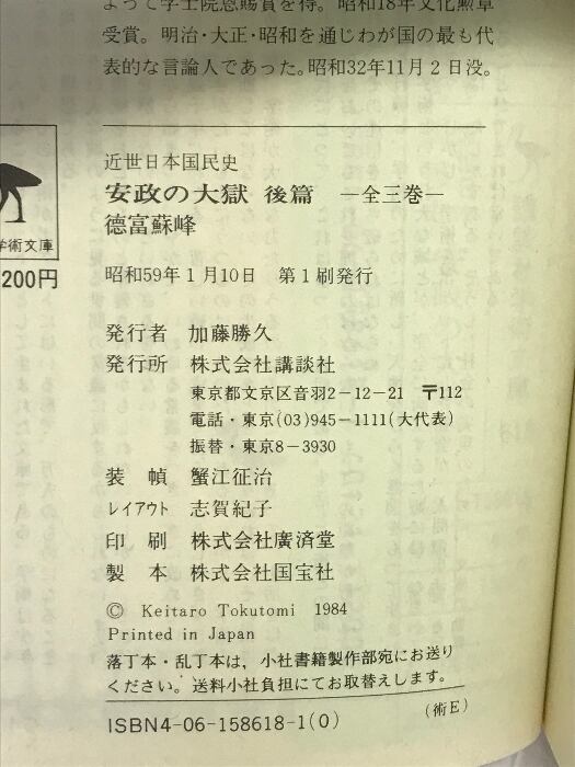 近世日本国民史 安政の大獄 後篇 (講談社学術文庫 618) 講談社 徳富 蘇峰