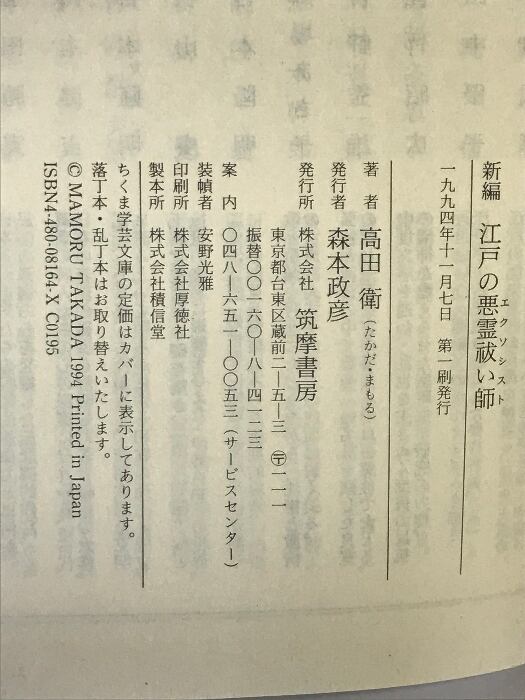新編江戸の悪霊祓い師 (ちくま学芸文庫 タ 10-1) 筑摩書房 高田 衛