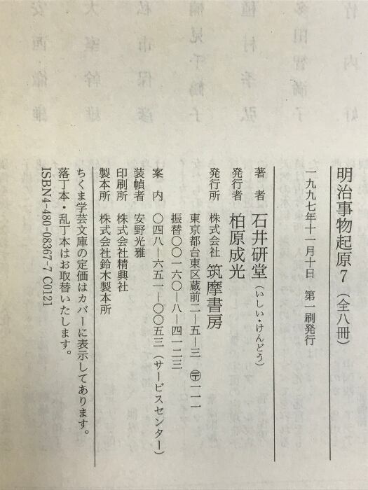 明治事物起原 7 (ちくま学芸文庫 イ 16-7) 筑摩書房 石井 研堂