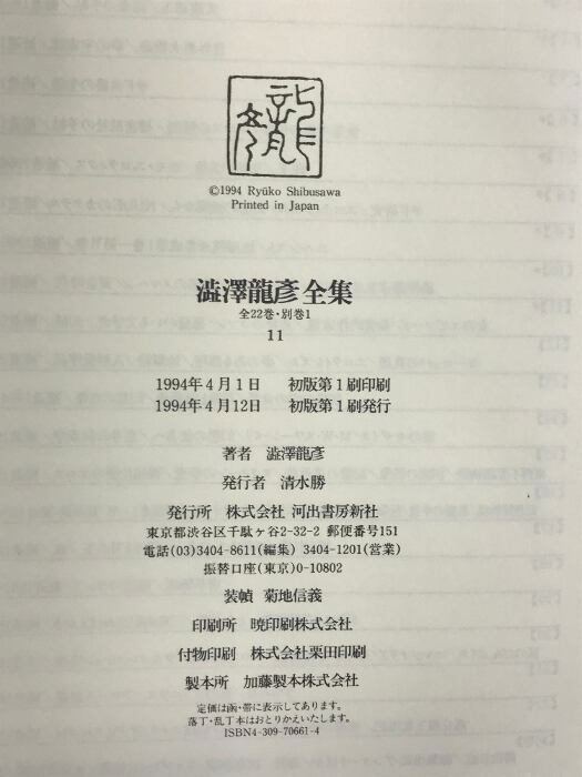 タイトル:澁澤龍彦全集〈11〉 女のエピソード,偏愛的作家論,変身のロマン,悪魔のいる文学史,幻妖 他 河出書房新社 澁澤 龍彦