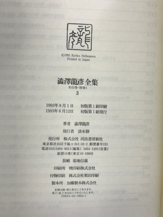 澁澤龍彦全集〈3〉 河出書房新社 澁澤 龍彦