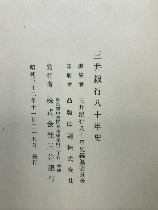 三井銀行八十年史 昭和32年 三井銀行80年史編纂委員会 発行:株式会社 三井銀行
