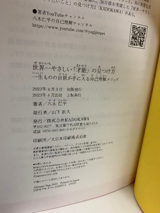 タイトル:世界一やさしい「才能」の見つけ方 一生ものの自信が手に入る自己理解メソッド KADOKAWA 八木 仁平