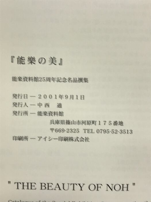 【図録】能楽の美 能楽資料館開館25周年記念名品選集 2001年 能楽資料館:発行