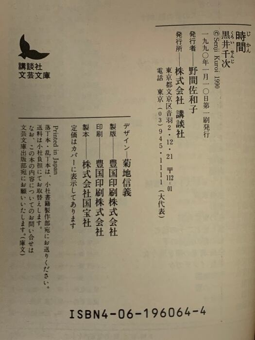 時間 (講談社文芸文庫 くA 2) 講談社 黒井 千次