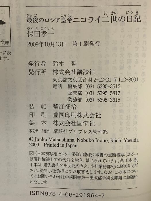 最後のロシア皇帝ニコライ二世の日記 (講談社学術文庫 1964) 講談社 保田 孝一