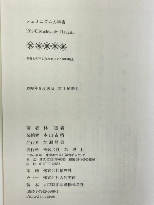 タイトル:フェミニズムの害毒 草思社 林 道義