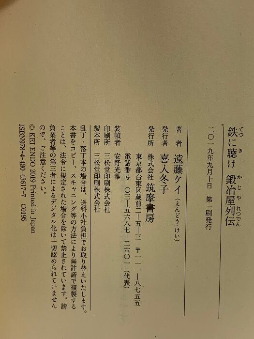 鉄に聴け 鍛冶屋列伝 (ちくま文庫) 筑摩書房 遠藤 ケイ