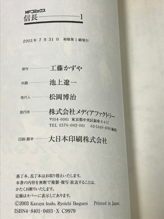 タイトル:初版 信長 全8巻 セット メディアファクトリー 原作 工藤かずや 作画 池上遼一