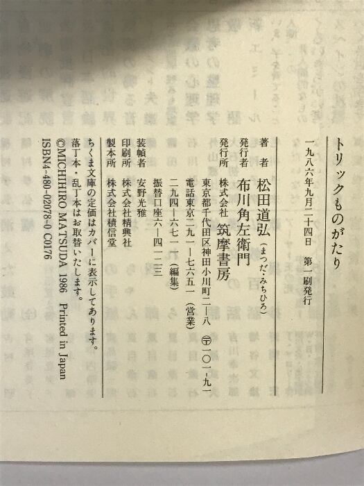 トリックものがたり (ちくま文庫 ま 2-2) 筑摩書房 松田 道弘