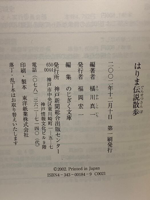 タイトル:はりま伝説散歩 (のじぎく文庫) 神戸新聞出版センター 橘川 真一編