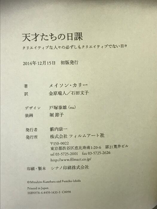 タイトル:天才たちの日課 クリエイティブな人々の必ずしもクリエイティブでない日々 フィルムアート社 メイソン・カリー