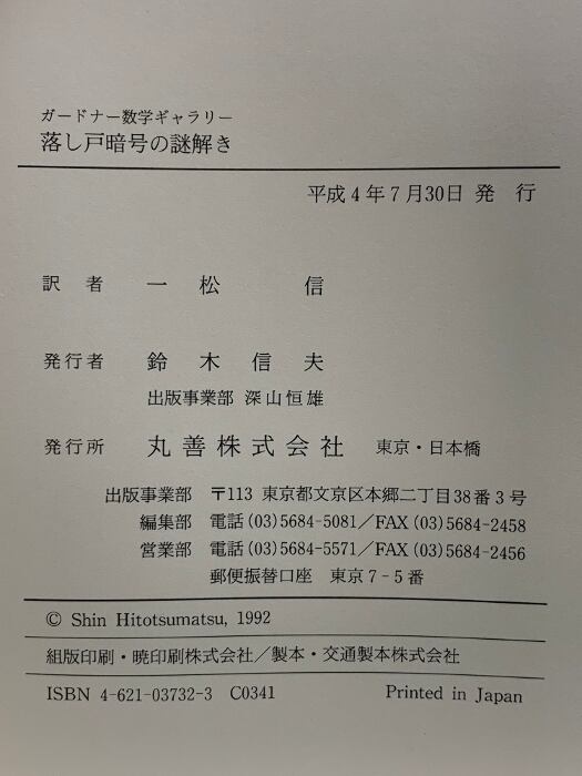 タイトル:落し戸暗号の謎解き (ガードナー数学ギャラリー) 丸善出版 マーチン ガードナー