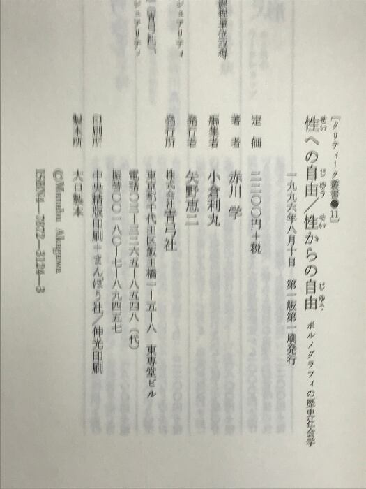 タイトル:性への自由/性からの自由: ポルノグラフィの歴史社会学 (クリティーク叢書 11) 青弓社 赤川 学