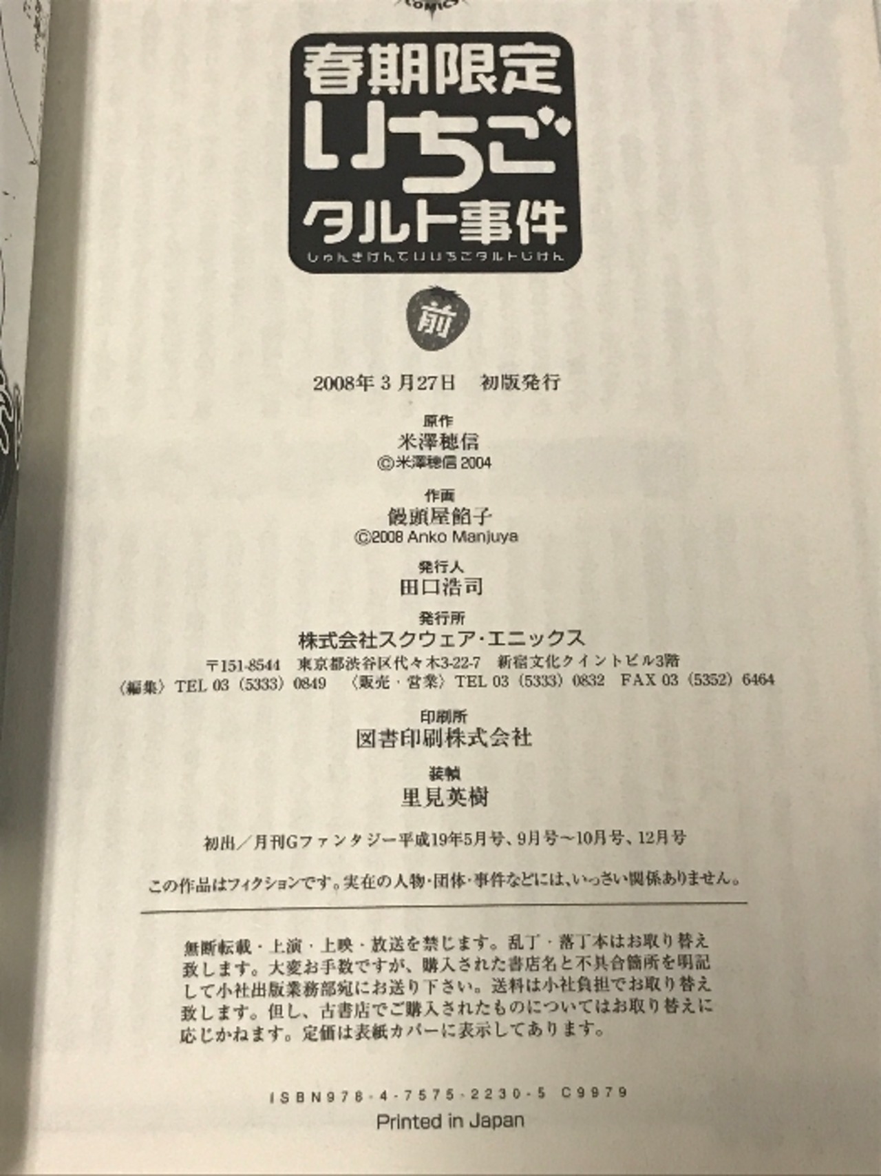 タイトル:春期限定いちごタルト事件 コミック 前後 全2巻 セット スクウェア・エニックス 米澤穂信 饅頭屋餡子