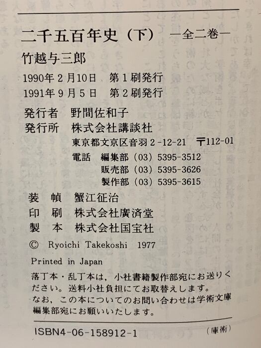 タイトル:二千五百年史 下 新装版 (講談社学術文庫 912) 講談社 竹越 与三郎