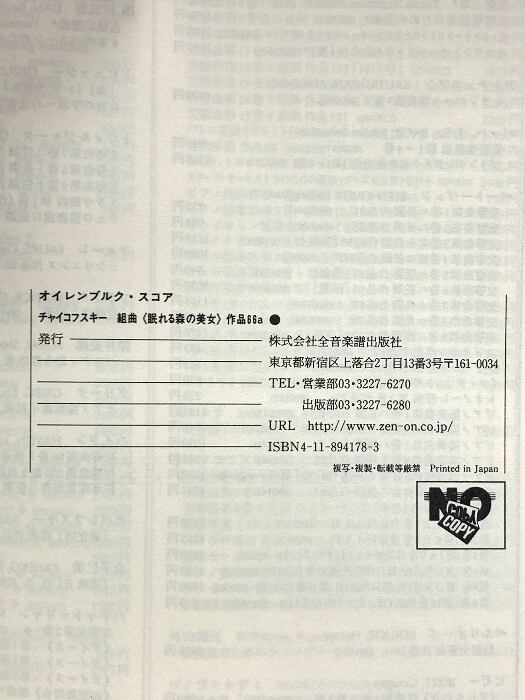 タイトル:オイレンブルクスコア チャイコフスキー 組曲《眠れる森の美女》 作品66a (オイレンブルク・スコア) ゼンオン(ZENON) D.L.ジョーンズ