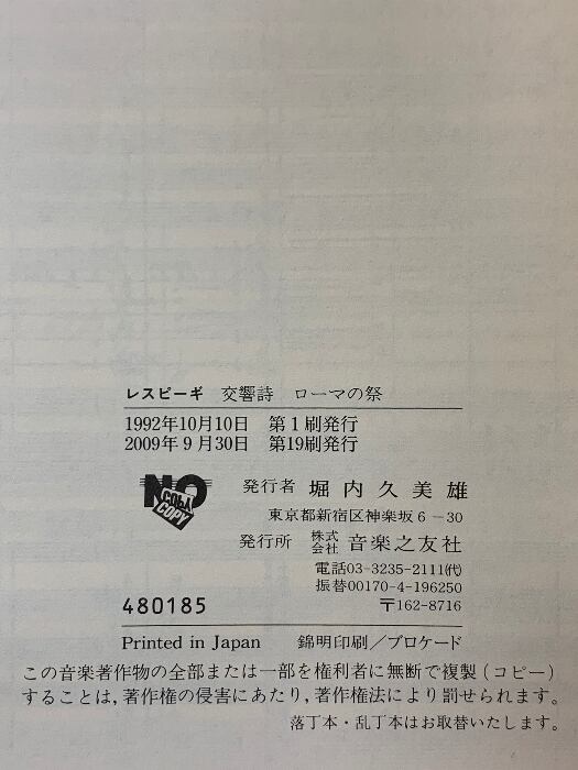 OGT-185 レスピーギ 交響詩 ローマの祭 (ミニチュア・スコア) 音楽之友社 レスピーギ