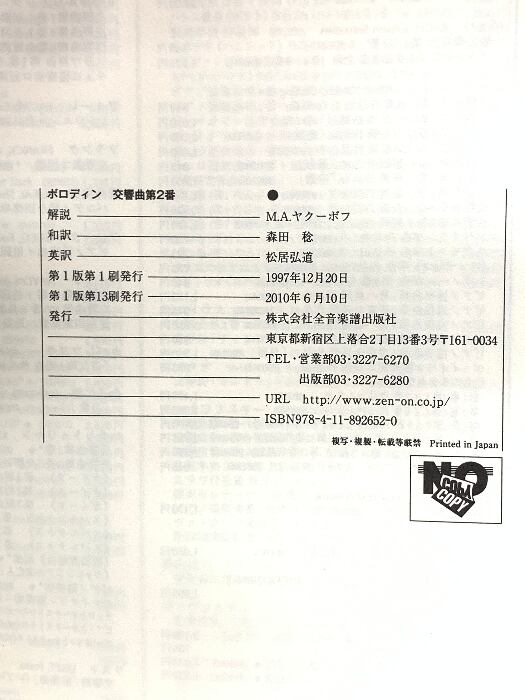 タイトル:スコア ボロディン 交響曲第2番 全音楽譜出版社 マナシール・ヤクーボフ