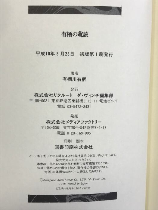 タイトル:有栖の乱読 (ダ・ヴィンチブックス ダ・ヴィンチミステリーシリーズ) KADOKAWA(メディアファクトリー) 有栖川 有栖