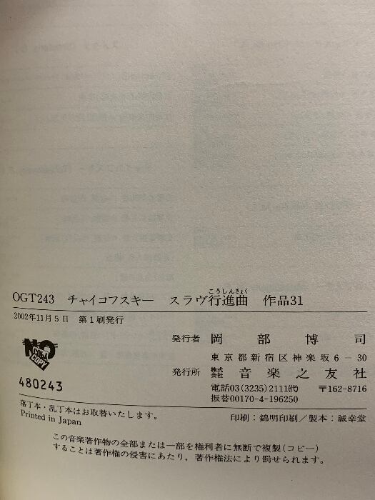 タイトル:OGTー243 チャイコフスキー スラヴ行進曲 作品31 (Ongaku no tomo miniature scores) 音楽之友社 チャイコフスキー