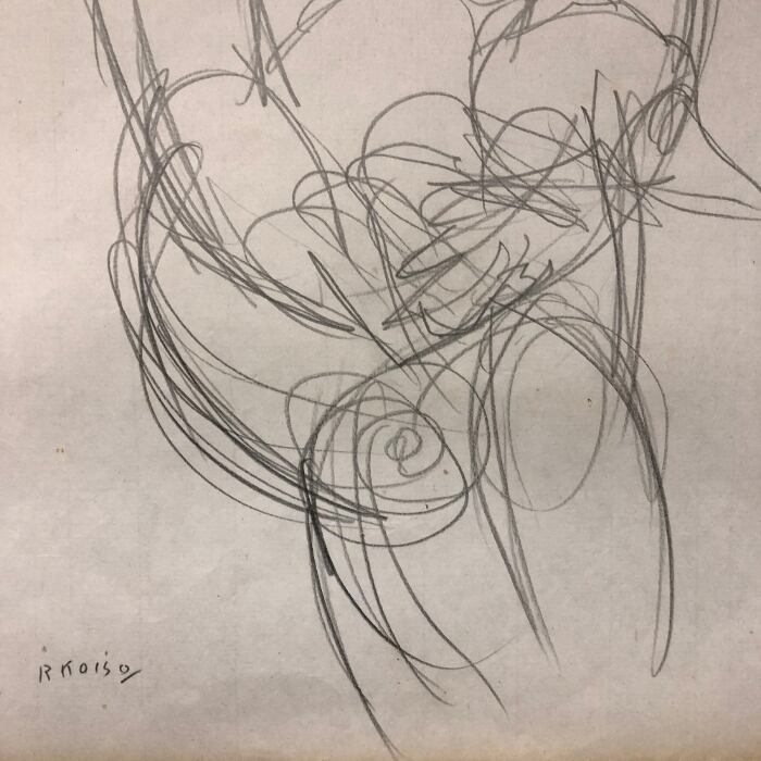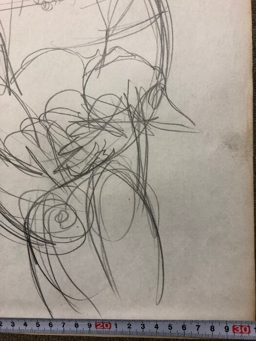 小磯良平 デッサン パリの少女と犬 鉛筆デッサン画 約44cmx30cm