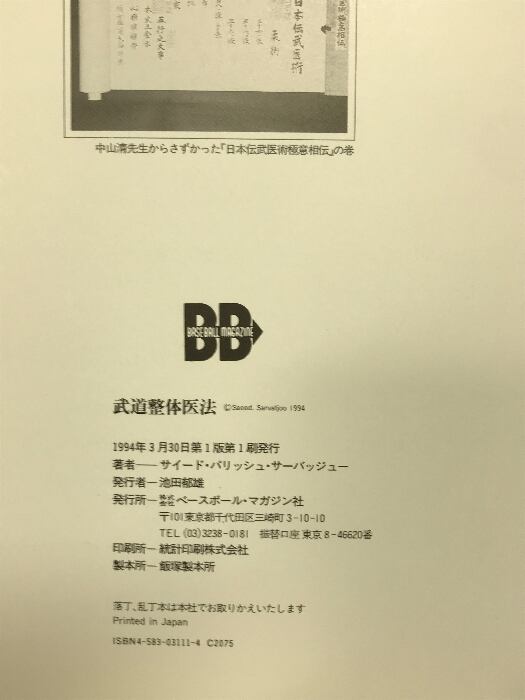 タイトル:武道整体医法: 武道医学入門 ベースボール・マガジン社 サイード パリッシュ・サーバッジュー