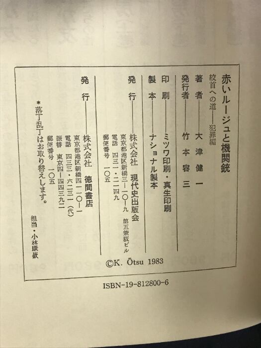 タイトル:赤いルージュと機関銃: 絞首への道犯罪編 徳間書店 大津 健一