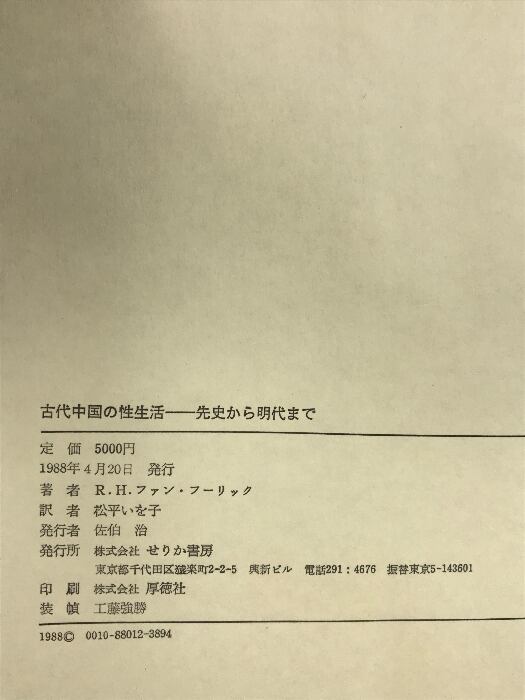 タイトル:古代中国の性生活: 先史から明代まで せりか書房 R.H.ファン フーリック